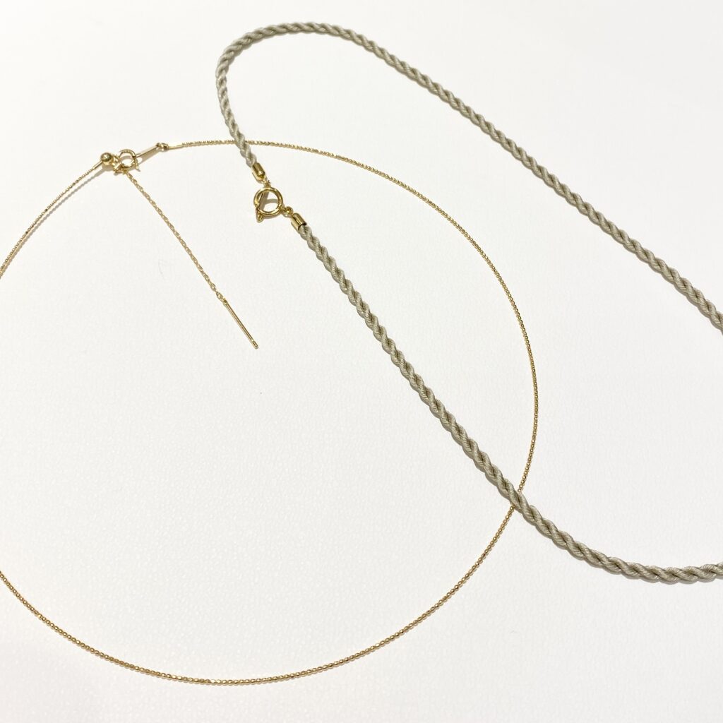ワイヤーネックレス、シルク紐ネックレスなどもバリエーションを楽しんでいただけたら嬉しいです。