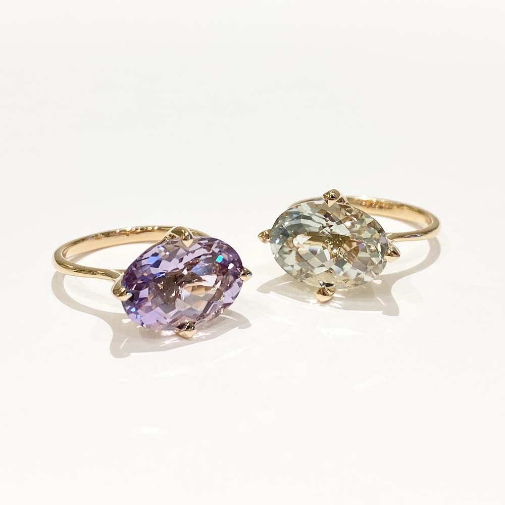 グリーン・パープル・イエローどれもフェミニンな色合いで独自のカットがダイヤモンドのような輝きを放っています。