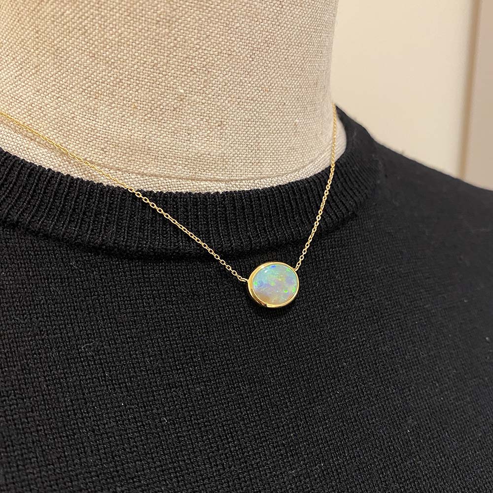 水分を吸収・放出する性質があり、湿気や水により見た目が変わることがありまので、少し取り扱いに注意が必要な宝石となります。