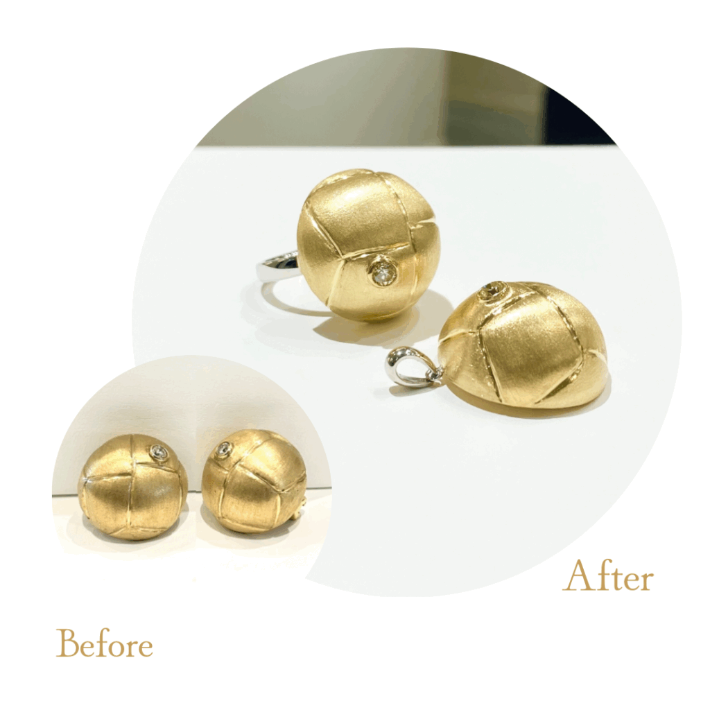 ゴールドイヤリングを、ペンダントとリングにリメイク