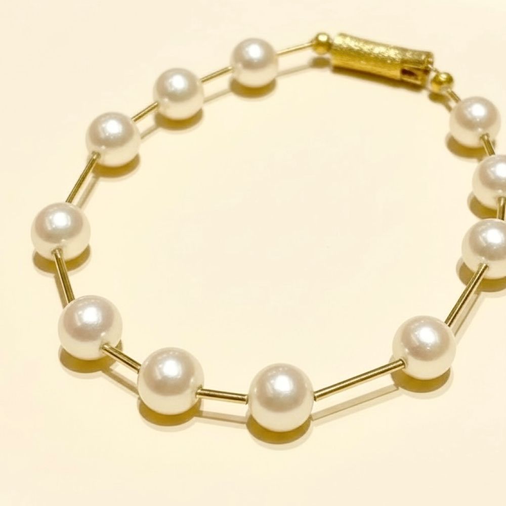 アコヤパールと18金イエローゴールドのブレスレットです。金具は、シルバー製です。