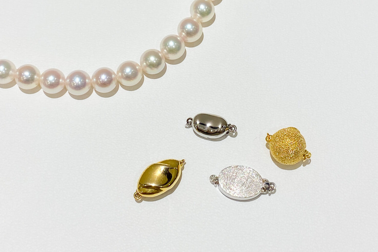 お好みのパール、金具をお選びいただきます。お使いやすいクラスプを多数ご用意しております。