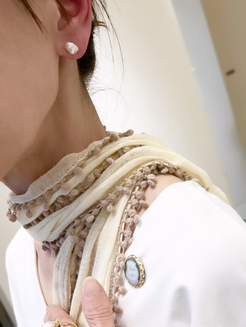 お迎えいただいたケシパールピアスとのコーディネートも素敵です。